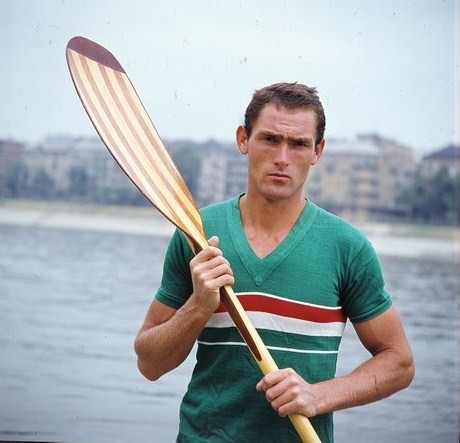 A kép jobb oldalán Babella László, a balon pedig az az ember, akit ő fedezett fel, ő edzette és ő ajánlotta a Fradiba, aki lett az FTC máig egyetlen kajakos olimpiai bajnoka, Hesz Mihály.