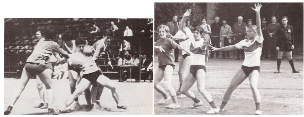 Takácsné Giba Márta (képünkön az ellenfél karjai között), Szőkéné Bognár Erzsébet és Csiha Magdolna (képünkön éppen egymás mellett védekeznek) rettegett gólvágók voltak, akiknek ha elhagyta a kezét a labda, a kapusok általában már csak a hálóból tudták kivenni. A Fradiban kezdte pályafutását a későbbi idők legendássá vált magyar klasszisa Sterbinszky Amália is.