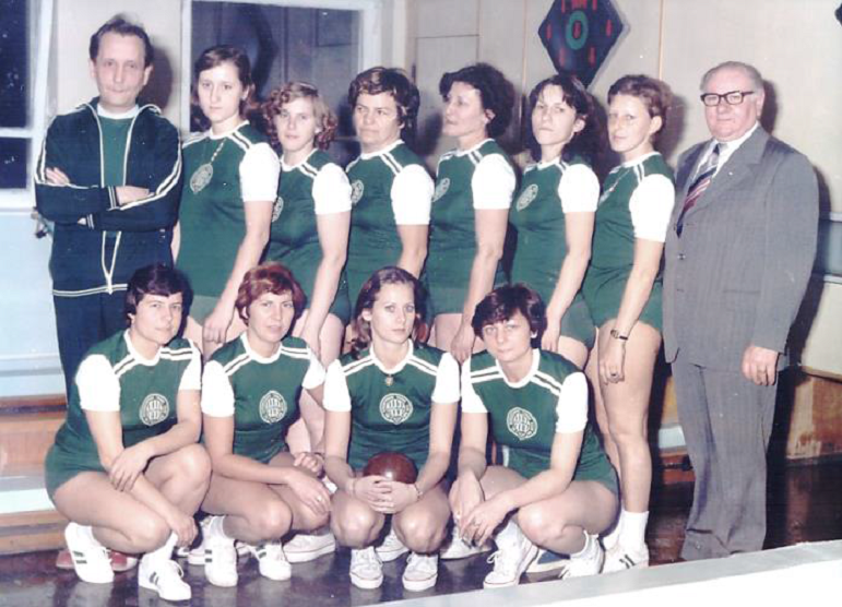 Állnak balról: Maróti Gyula edző, Hankó Zsuzsa, Szilassy Erika, Sallai Mátyásné, Darázsi Józsefné, Gazdag Judit, Szenczi Judit, Pletser Ferenc intéző. Guggolnak: Heincz Mária, Szilassy Tiborné, Decsi Jolán, Németh Angéla.