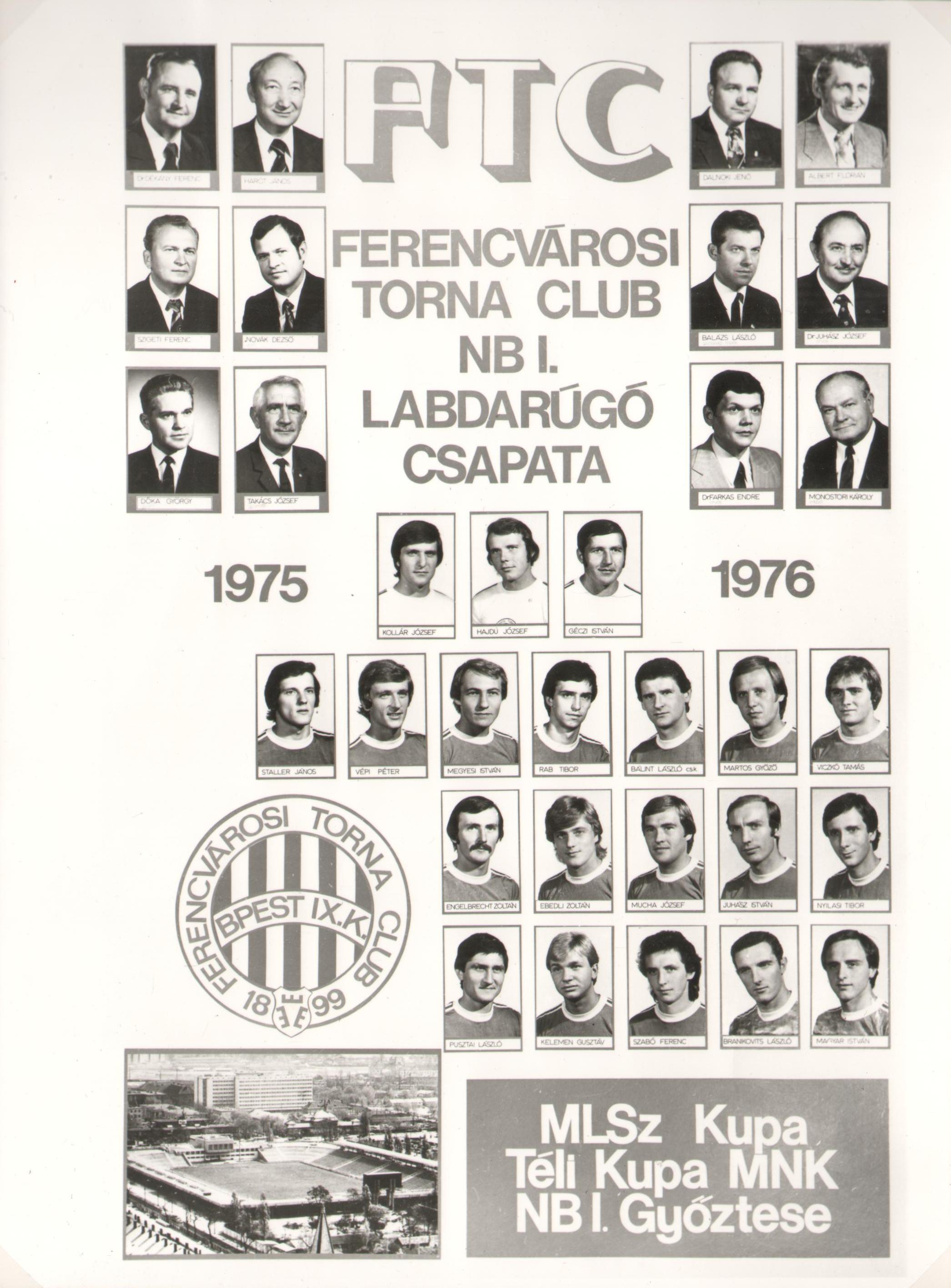 Az 1975/76-os bajnokságban a Fradi átgázolt a magyar mezőnyön. A csapat, amelyet Dalnoki Jenő összerakott és az előző évadban a KEK-döntőig menetelt, igazán összeérett, a gépezetben minden fogaskerék a helyén volt és hibátlanul működött. Íme a tabló, amit az egyesület erről a csapatról készíttetett.
