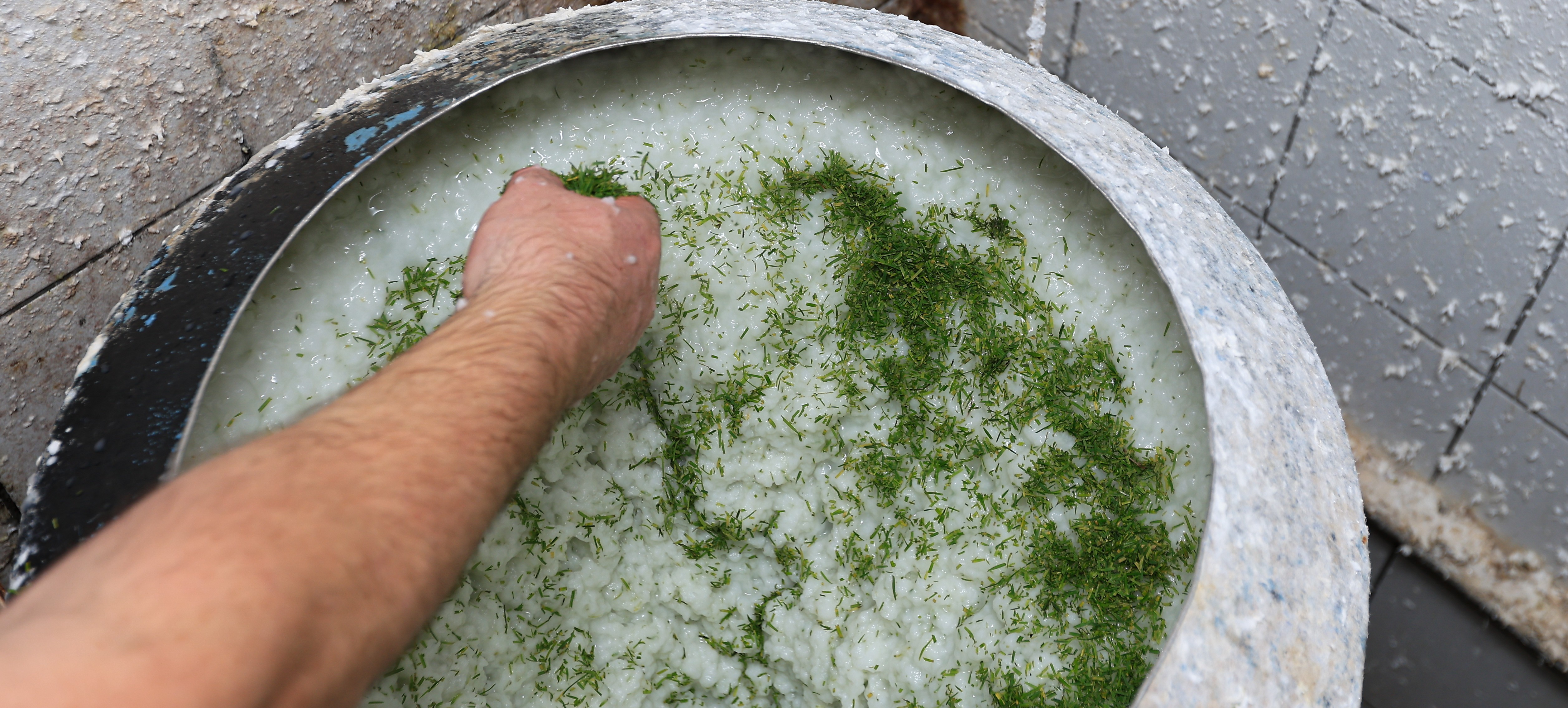 — ebbe a laza keverékbe merítettek egy speciális szerszámot, ami egy szúnyoghálóhoz hasonlóan sűrű szövésű drótháló