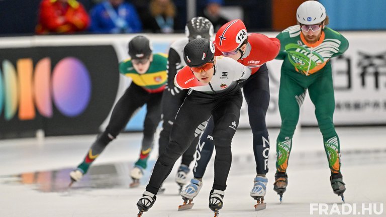 Rövidpályás gyorskorcsolyázóink közül Mun Von Dzsun a negyeddöntőben.