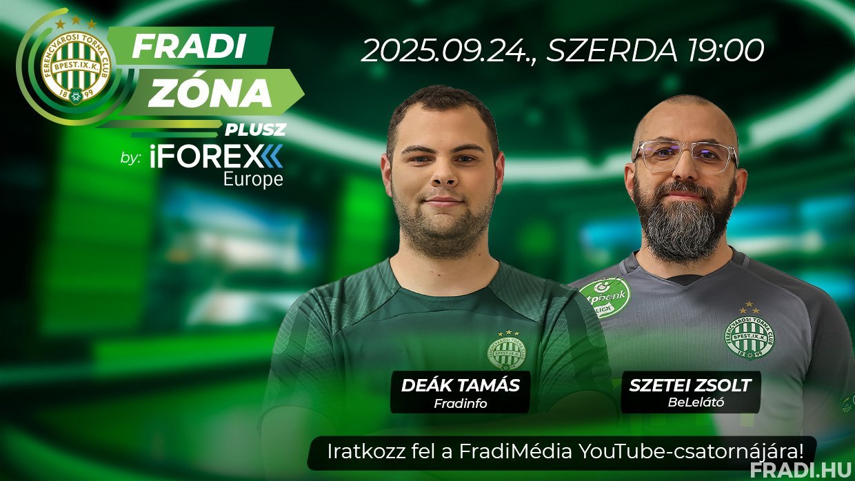 A Fradi Zóna Plusz by iFOREX Europe legújabb adását szeptember 24-én, szerdán 19.00-tól tekinthetik meg a FradiMédia hivatalos YouTube-csatornáján.