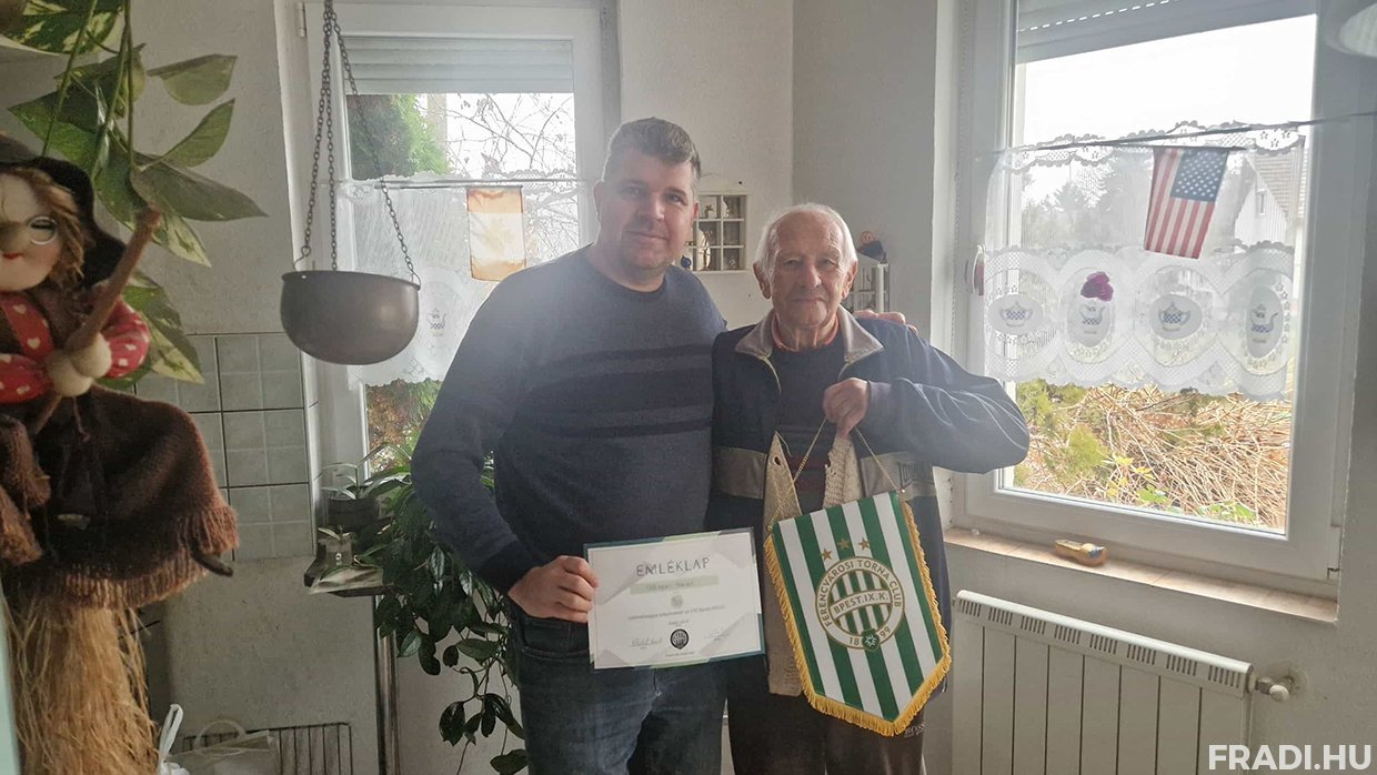Dálnoki József 64 alkalommal lépett pályára klubunk játékosaként, egy-egy bajnoki ezüst- és bronzérmet nyert az FTC-vel. A 90 esztendős Dálnoki Józsefet a Fradi Múzeum vezetője, Tobak Csaba lepte meg kisebb ajándékcsomaggal az FTC nevében.