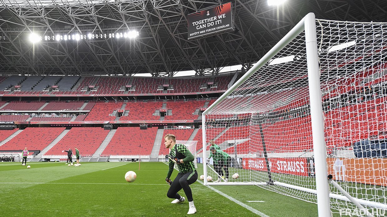 Férfi labdarúgócsapatunk szerda délelőtt már a csütörtöki, Bayer Leverkusen elleni UEL-nyolcaddöntő visszavágójának helyszínén, a Puskás Arénában edzett. A tréning előtt a csapat köszöntötte a március 15-én 42. születésnapját ünneplő sportigazgatónkat, Hajnal Tamást. A mérkőzést megelőző sajtótájékoztatón pedig vezetőedzőnk, Sztanyiszlav Csercseszov és kapusunk, Dibusz Dénes a várhatóan fergeteges hangulatról beszélt.