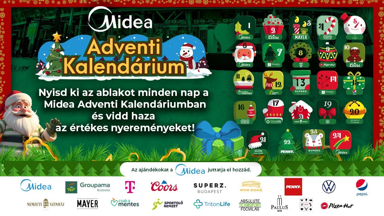 Közeleg a december, az ünnepek ideje, november 30-val pedig belépünk az adventi időszakba, ahol csak úgy, mint a korábbi években, idén is remek nyereményjátékkal várjuk szurkolóinkat, ezúttal a Midea Adventi Kalendáriummal.