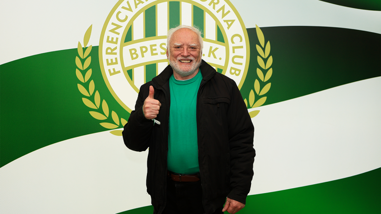Különleges vendég a Groupama Arénában: az AZ Alkmaar elleni szenzációs, továbbjutást érő 4-3-as győzelmet a helyszínről nézte végig a világ minden táján ismert Hide The Pain Harold, azaz Arató András, akiről kiderült, ha futballról van szó, akkor csakis a Ferencváros jöhet szóba.
