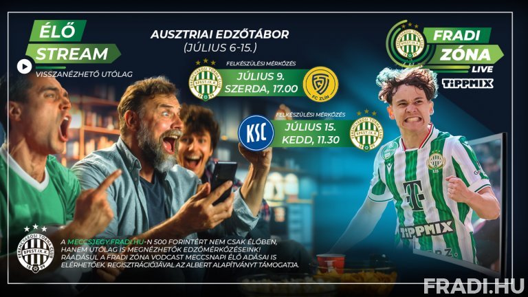 Ha első kézből szeretne értesülni a csapatunkat érintő legfrissebb hírekről és érdekességekről, kövesse a FradiMédia hivatalos felületeit: a Facebookon, az Instagramon, a TikTokon, a YouTube-on, a fradi.hu-n és a Fradi Applikáción is exkluzív anyagokkal készülünk szurkolóinknak.