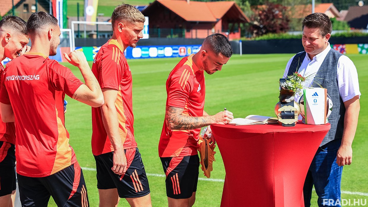 Egy alig több mint 2000 fős német településen, Weiler im Allgäuban készül múlt hét óta a magyar labdarúgó-válogatott. Marco Rossi szövetségi kapitány a szerdai, németek elleni Eb-csoportmeccs előtti utolsó edzést tartotta együttesének kedd délelőtt, a FradiMédia is jelen volt sok más médiummal együtt. A nagy érdeklődés egyrészt annak is volt köszönhető, mert a házigazdák lesznek az ellenfeleink szerdán 18 órától Stuttgartban, másrészt a helyi portálok is szerették volna megörökíteni, hogy labdarúgóink, köztük a három ferencvárosi játékos, Varga Barnabás, Botka Endre és Dibusz Dénes is aláírja a település históriás könyvét a polgármester jelenlétében.