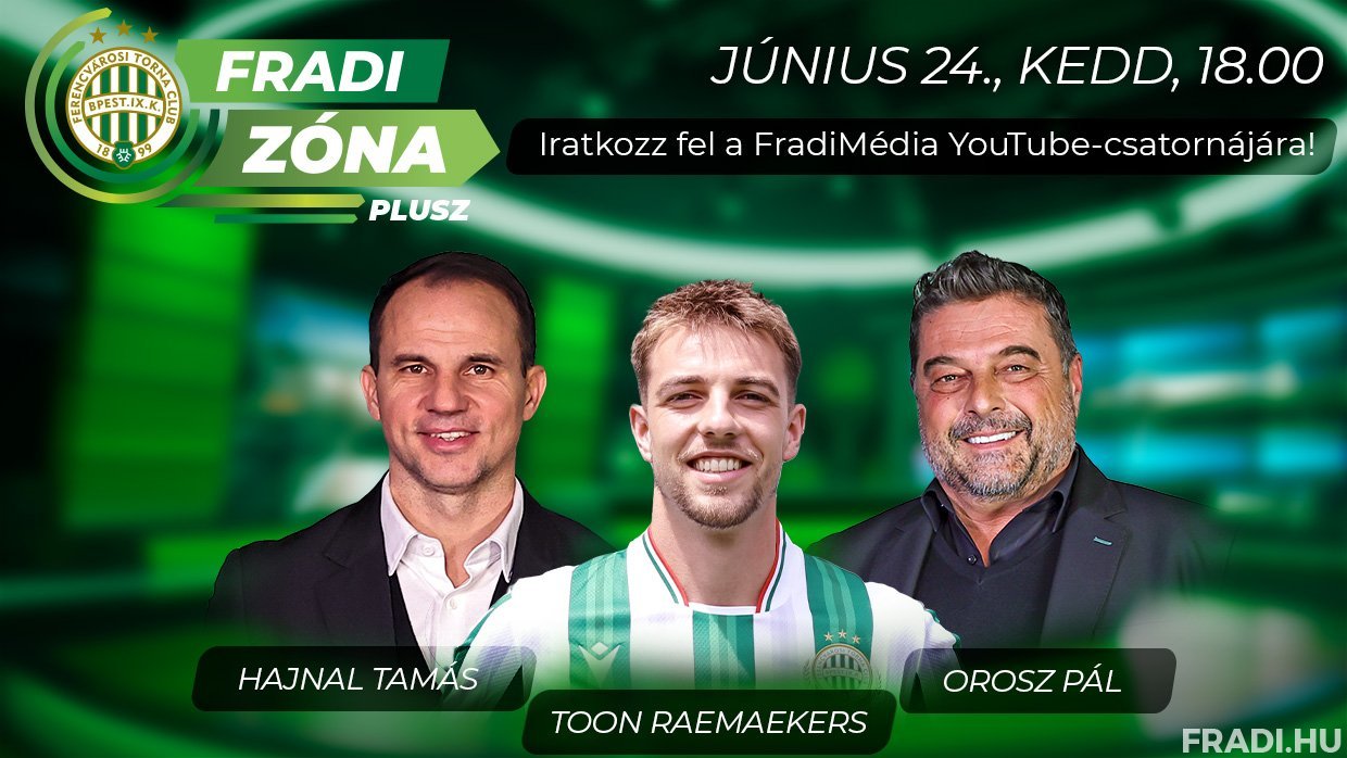 A Fradi Zóna Plusz legújabb adását június 24-én, kedden 18.00-tól követhetik a FradiMédia hivatalos YouTube-csatornáján. Ezúttal nemrég bejelentett új igazolásunkkal, a KV Mechelentől érkezett belga Toon Raemaekersszel, az FTC Labdarúgó Zrt. vezérigazgatójával, Orosz Pállal, valamint az FTC sportigazgatójával, Hajnal Tamással beszélgetünk.