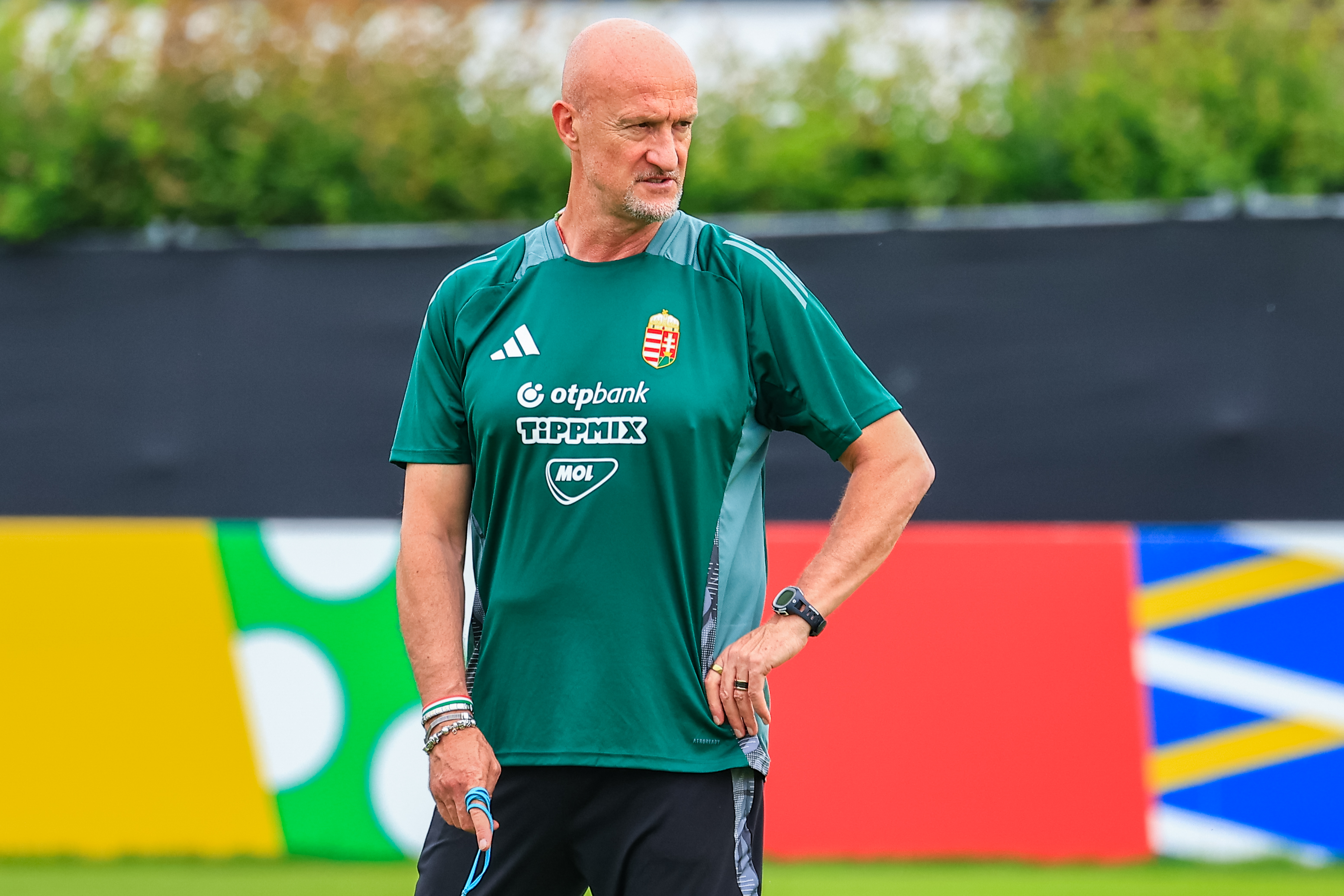 A labdarúgókat követően a szövetségi kapitány következett - a csapat ezúttla kihagyta a pályabejárást, mivel szerdán már játszottak itt, ráadásul szakadt az eső a sajtótájékoztató időpontjában.