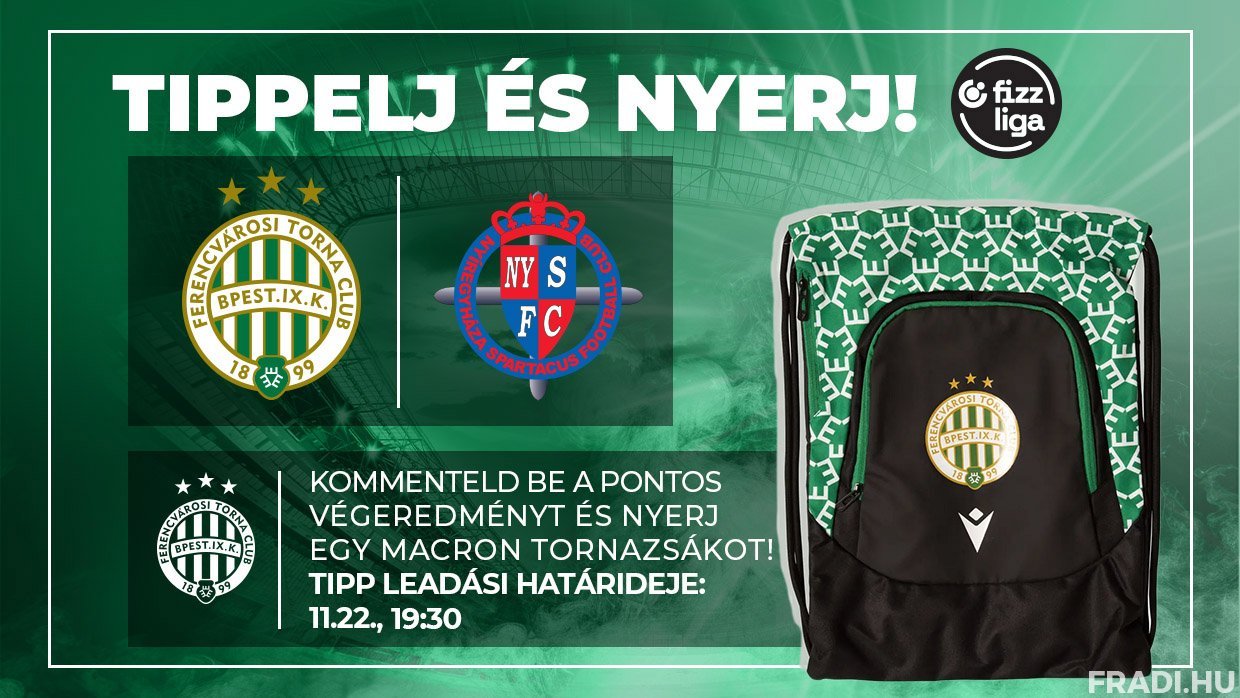 Itt az újabb remek alkalom, hogy szurkolóink különleges Fradi-ajándékot nyerjenek! Figyelje a Fradi Facebook-oldalát, ahová a Nyíregyháza elleni mérkőzés előtt négy órával kitesszük a "Tippelj és nyerj!” posztunkat, ez alá várjuk a pontos tippeket arról, hogy mi lesz a találkozó pontos végeredménye.