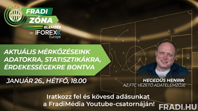 A nagysikerű meccsnapi értékelő műsor után, ahogy azt már az elmúlt hónapokban rendszeres nézőink megszokhatták, hétfőnként újabb exkluzív vodcast következik: a Fradi Zóna Elemzés by iFOREX Europe adásában az aktuális bajnokinkat követő hétfőn Jáky Gergely műsorvezető az FTC vezető adatelemzőjével, Hegedűs Henrikkel beszélget, aki a legutóbbi mérkőzésből készített friss statisztikákkal, kimutatásokkal, érdekességekkel készül.