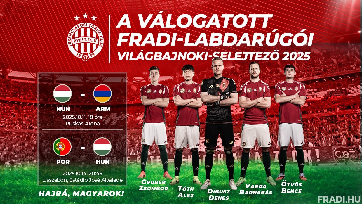 A magyar férfi labdarúgó-válogatott szövetségi kapitánya, Marco Rossi szeptember 30-án Telkiben keretet hirdetett az októberi világbajnoki selejtezőkre. Ennek értelmében öt FTC-játékos: Dibusz Dénes, Varga Barnabás, Tóth Alex, Ötvös Bence és Gruber Zsombor készülhet előbb az Örményország elleni hazai, majd a Portugália elleni idegenbeli találkozóra.