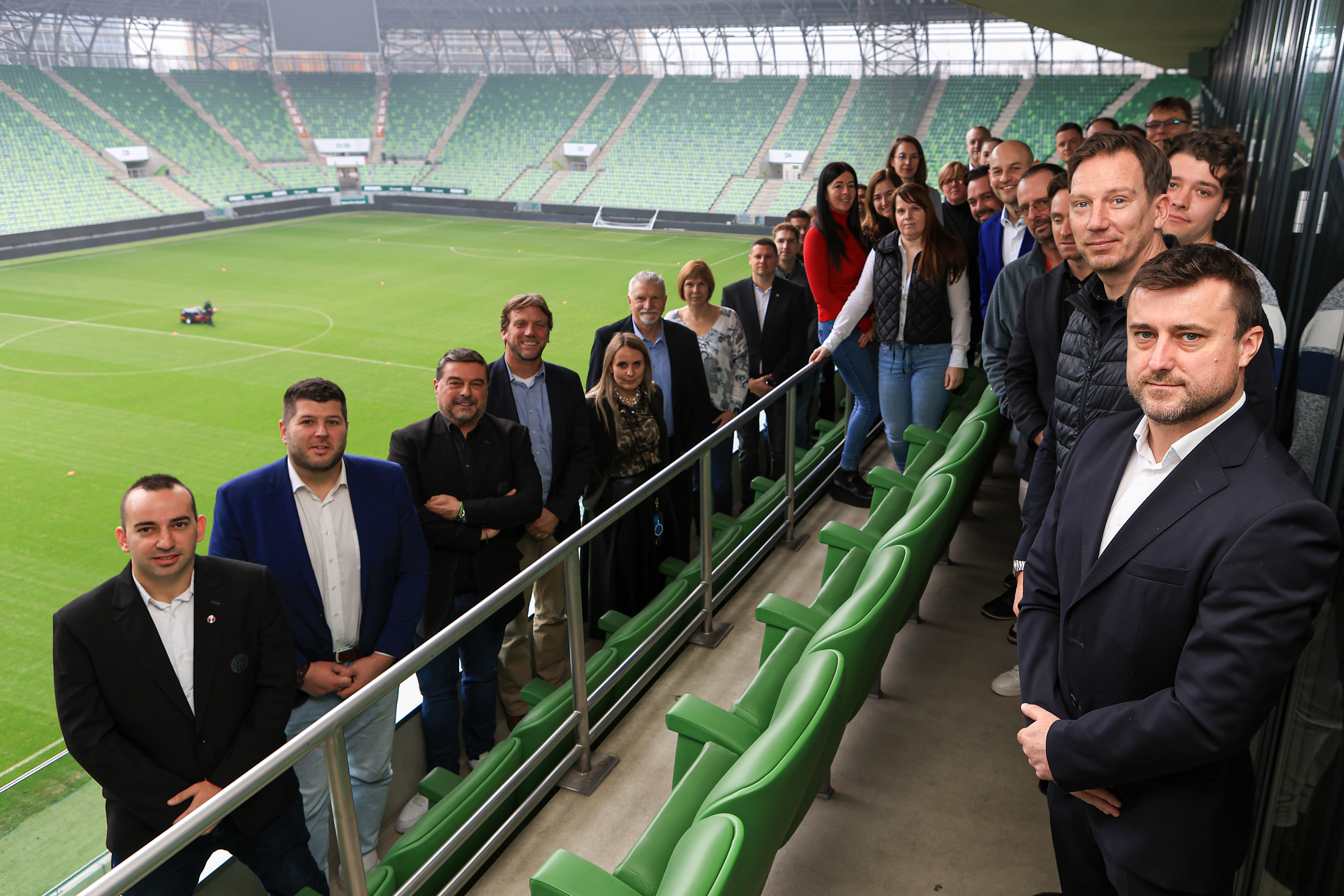 Nemzetközi és CSR osztályvezetőnk, Máté Bálint a Fradi közösségi programjairól prezentált, nemzetközi projektmenedzserünk, Keresztes Péter pedig az Európai Unió Erasmus+ Sport Programjának támogatásával megvalósuló Football for Climate Justice című projektet mutatta be. A Groupama Aréna üzemeltetési igazgatója, Györgydeák Péter mesélt a közönségnek a stadion környezetkímélő technológiáiról.