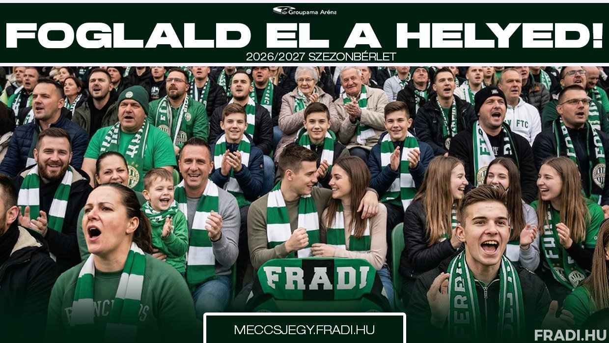 Megkezdődött a bérletértékesítés 36-szoros magyar bajnok és 24-szeres Magyar Kupa-győztes férfi labdarúgócsapatunk hazai mérkőzéseire a 2026/2027-es idényben. Együttesünk sorozatban már a harmadik alkalommal szerepelt valamelyik nemzetközi kupasorozat főtáblájának tavaszi szakaszában. A célunk, hogy a nemzetközi és a hazai sikersorozatot is tovább folytassuk. A szurkolók támogatása rengeteget jelent együttesünk számára, s bízunk benne, hogy az új szezonban is minél többen váltanak majd bérletet a Groupama Arénában rendezendő találkozóinkra. Foglalják el a helyüket, kössék be az öveket, mert indul az újabb utazás!