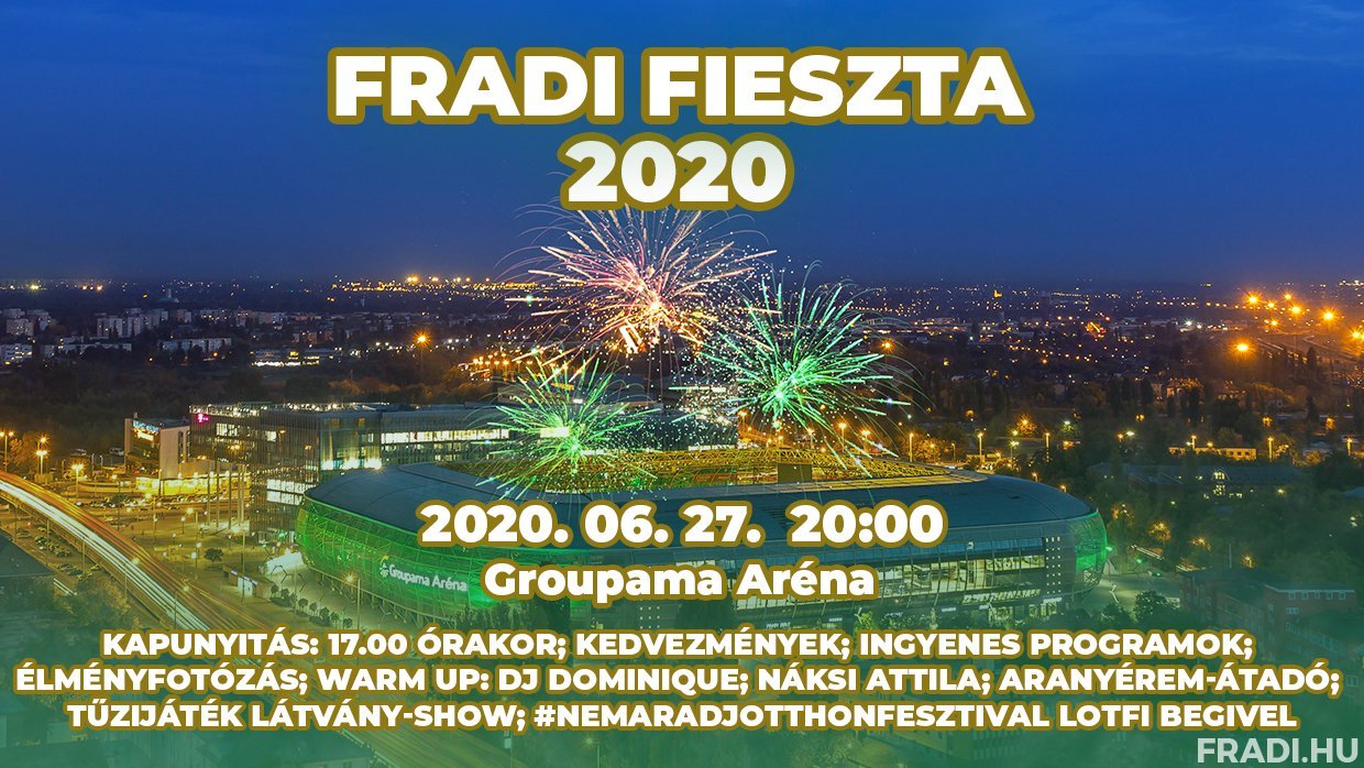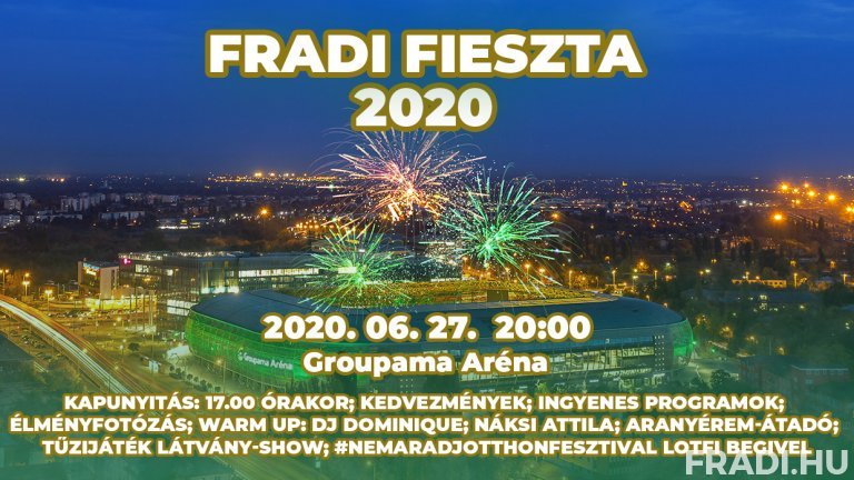 A Fradi Fieszta 2020-ról további részleteket IDE kattintva tudhat meg. Jegyek még kaphatók személyesen a Groupama Aréna jegypénztárában (K-P 10.00-18.00, szombaton 9.00-tól meccskezdésig) és a meccsjegy.fradi.hu-n is!