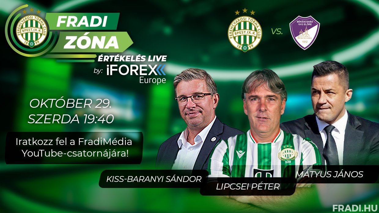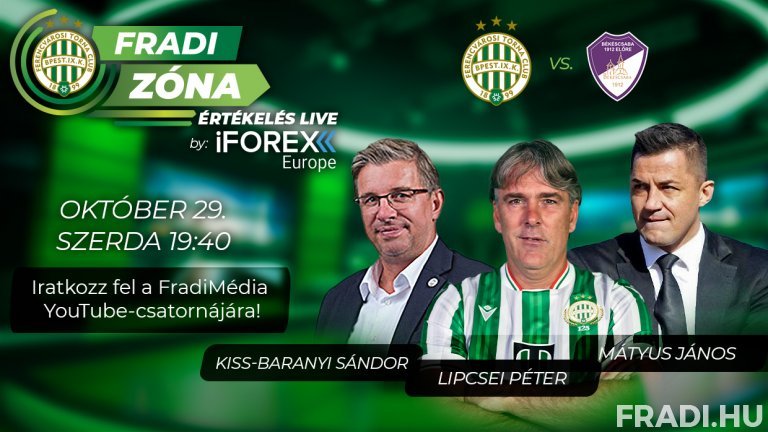 A Fradi Zóna Értékelés Live by iFOREX Europe adását a FradiMédia hivatalos YouTube-csatornáján követhetik figyelemmel.