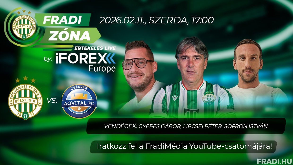 Fradi Zóna Értékelés Live by iFOREX Europe vodcast a Csákvár elleni Mol Magyar Kupa-nyolcaddöntőn is, kezdés 17.00-kor!
