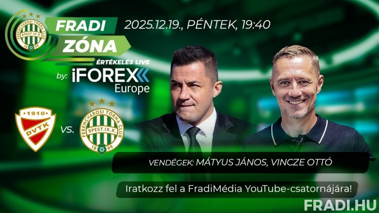 Fradi Zóna Értékelés Live by iFOREX Europe vodcast a DVTK elleni bajnokin, kezdés 19.40-kor!