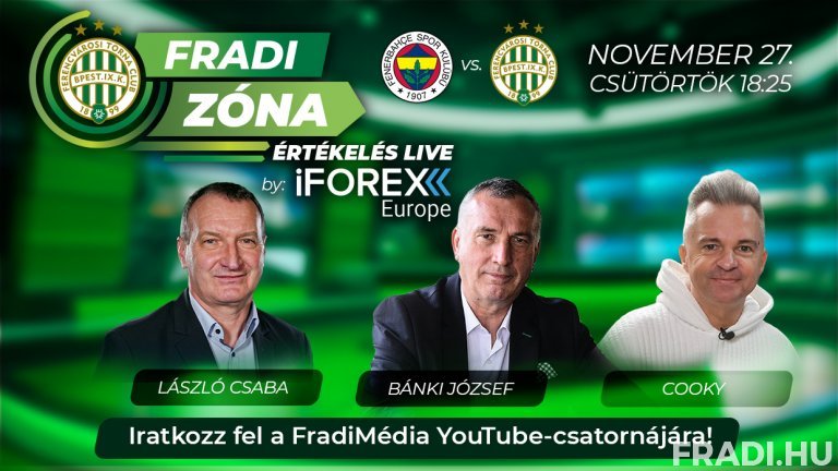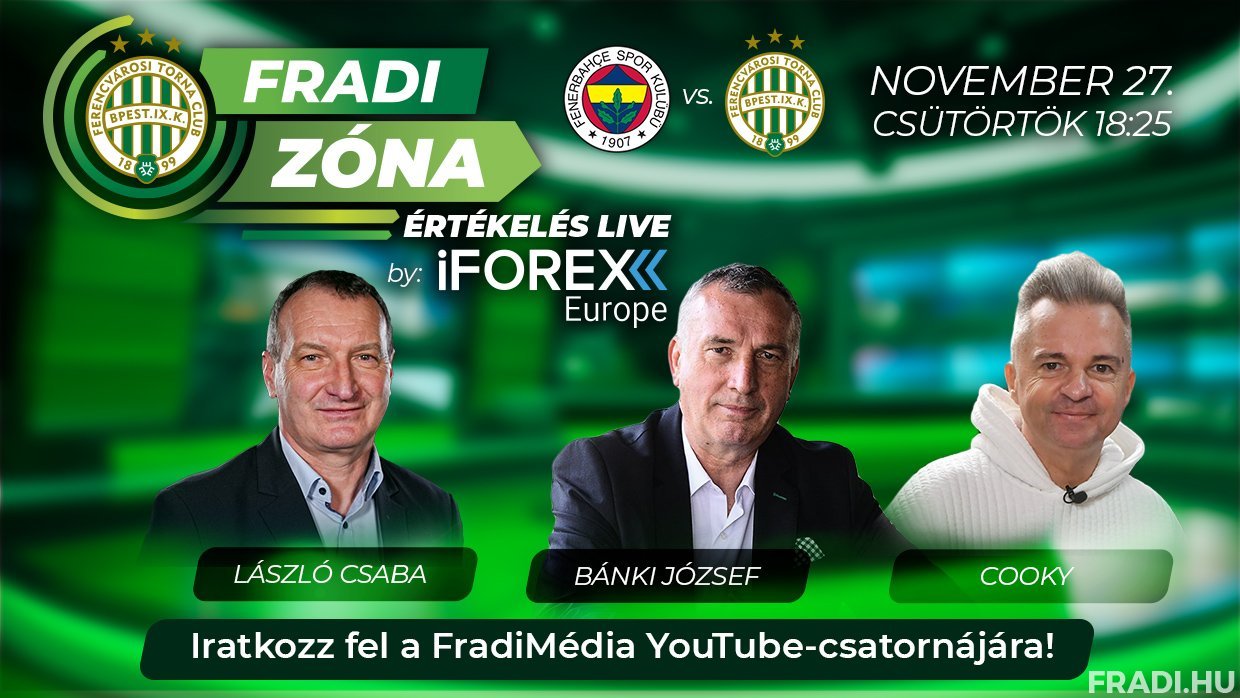 A Fradi Zóna Értékelés Live by iFOREX Europe adását a FradiMédia hivatalos YouTube-csatornáján követhetik figyelemmel.