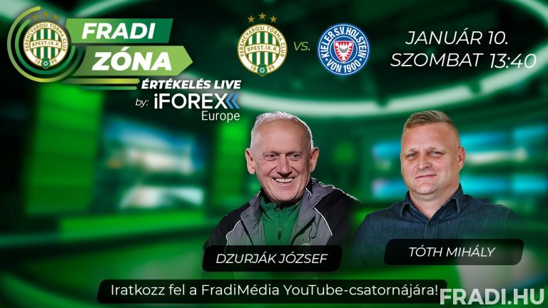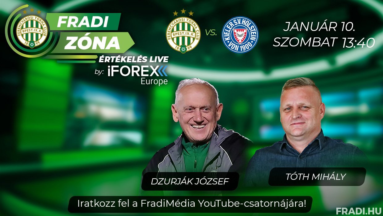 Fradi Zóna Értékelés Live by iFOREX Europe vodcast a spanyolországi edzőtábor első, a német Holstein Kiel elleni felkészülési mérkőzésén is, kezdés 13.40-kor!