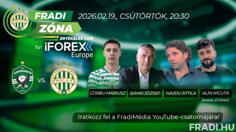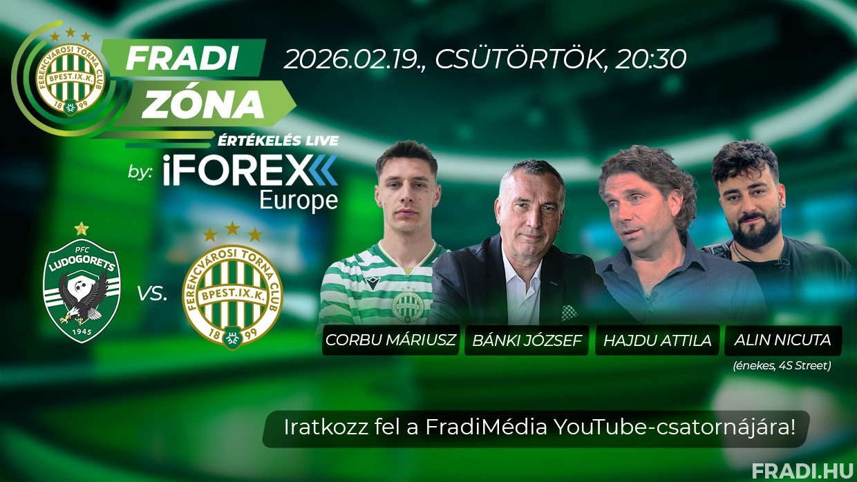 Férfi labdarúgócsapatunk az UEFA Európa Liga főtábláján a 12. helyen zárt, így a legjobb 16 közé jutásért meg kell nyernie egy rájátszást a bolgár Ludogorec Razgrad ellen, ennek a párharcnak az első körére február 19-én, csütörtökön, magyar idő szerint 21.00-től kerül sor Bulgáriában. A Fradi Zóna Értékelés Live by iFOREX Europe adása már 20:30-kor elkezdődik a felvezetéssel. Ezt követően a szünetben és a lefújás után is értékelik vendégeink a látottakat.