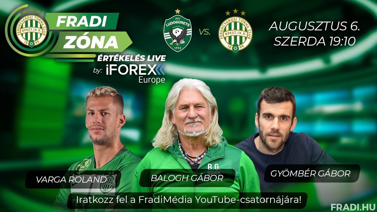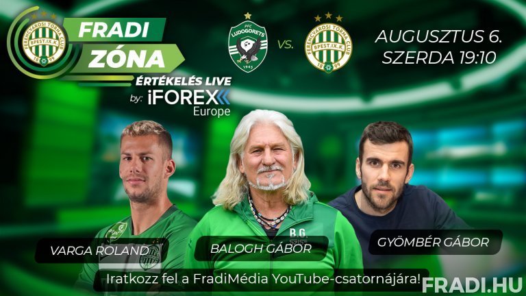 Fradi Zóna Értékelés Live by iFOREX Europe vodcast a Ludogorec elleni BL-selejtezőn, kezdés 19.10-kor!