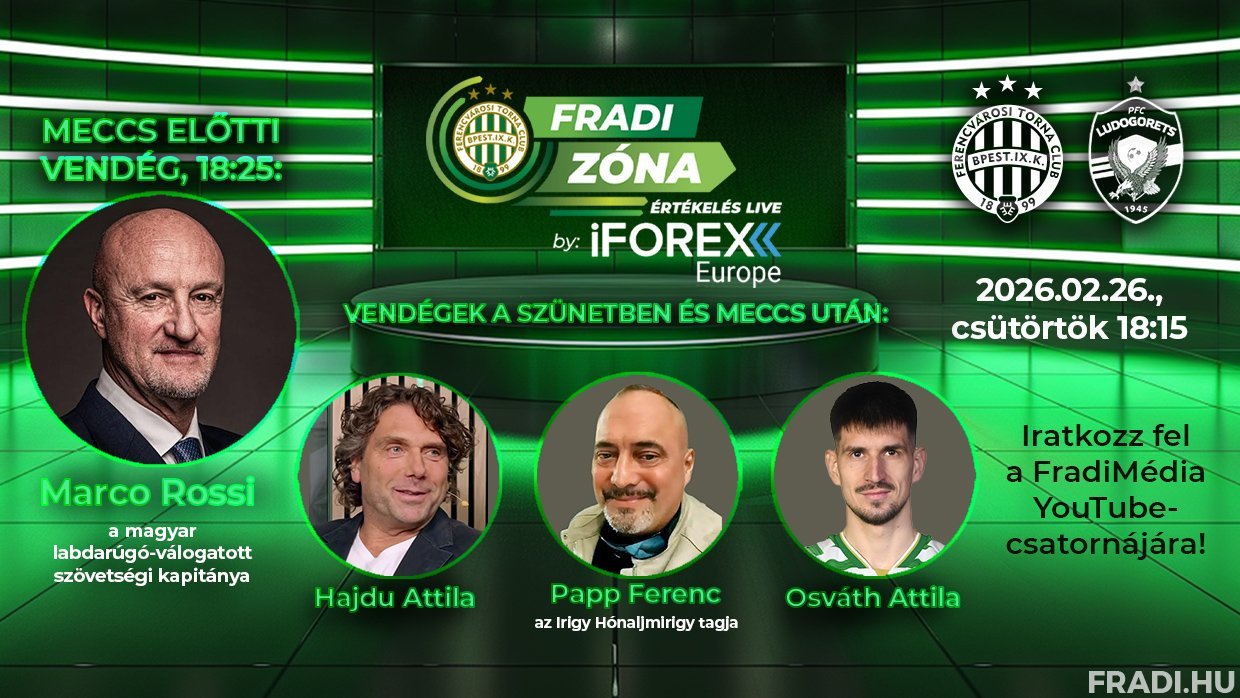 Fradi Zóna Értékelés Live by iFOREX Europe vodcast lesz futballcsapatunk csütörtöki, Ludogorec elleni UEFA Európa Liga play-off visszavágóján is.