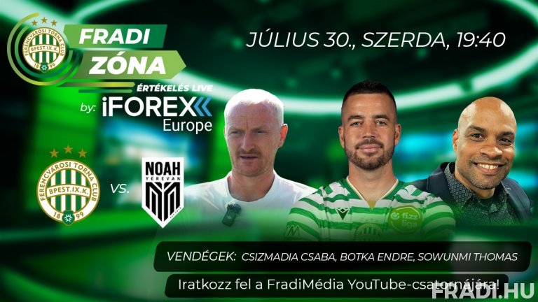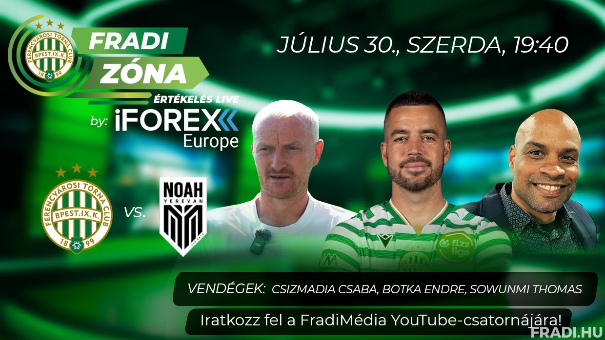 A Fradi Zóna Értékelés Live by iFOREX Europe adását a FradiMédia hivatalos YouTube-csatornáján követhetik figyelemmel.