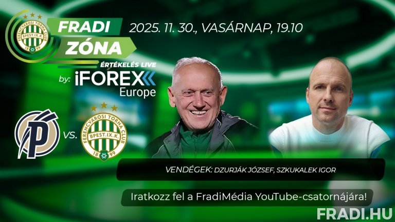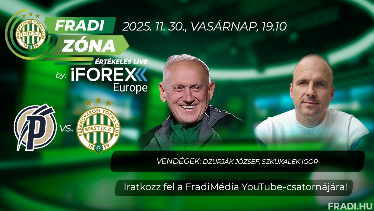 A Fradi Zóna Értékelés Live by iFOREX Europe adását a FradiMédia hivatalos YouTube-csatornáján követhetik figyelemmel.