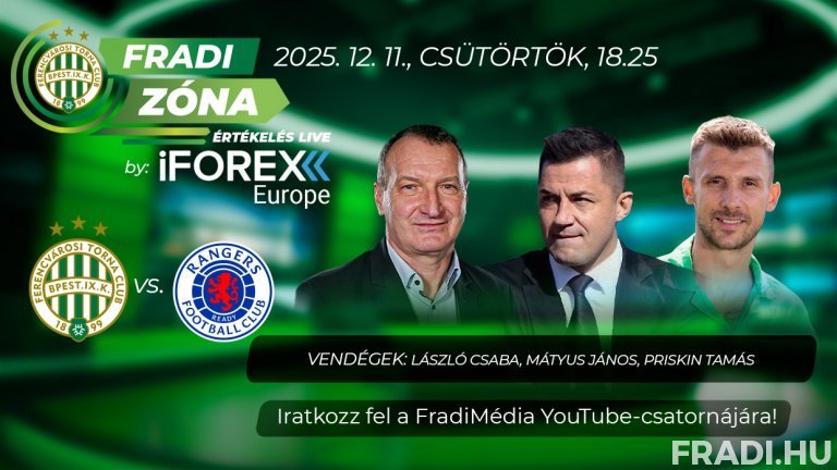 A Fradi Zóna Értékelés Live by iFOREX Europe adását a FradiMédia hivatalos YouTube-csatornáján követhetik figyelemmel.