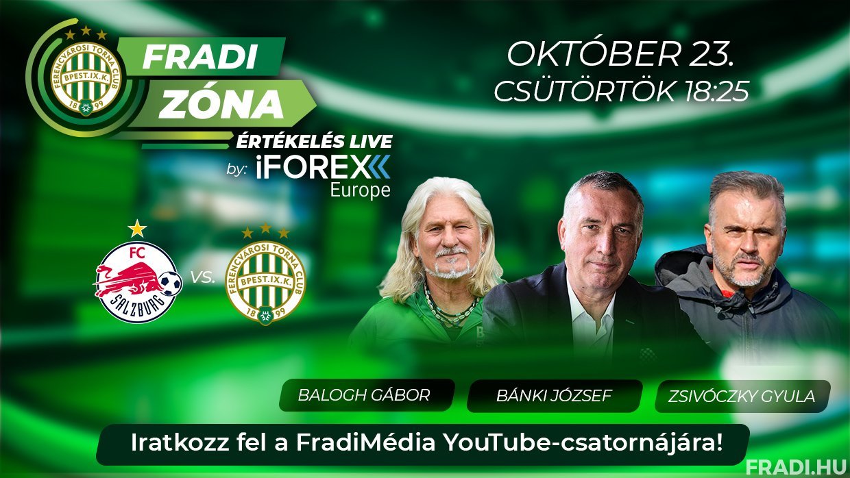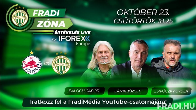 A Fradi Zóna Értékelés Live by iFOREX Europe adását a FradiMédia hivatalos YouTube-csatornáján kísérhetik figyelemmel.