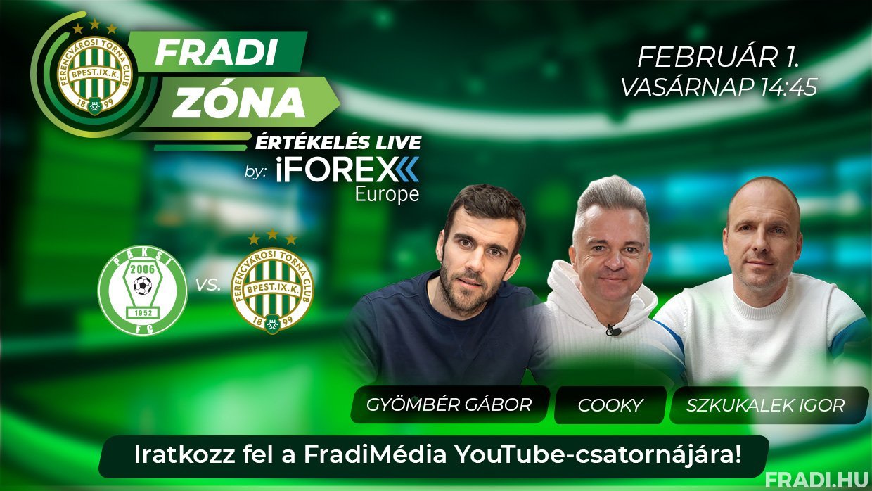 Fradi Zóna Értékelés Live by iFOREX Europe vodcast a Paksi FC elleni bajnoki rangadón is, kezdés 14.45-kor!