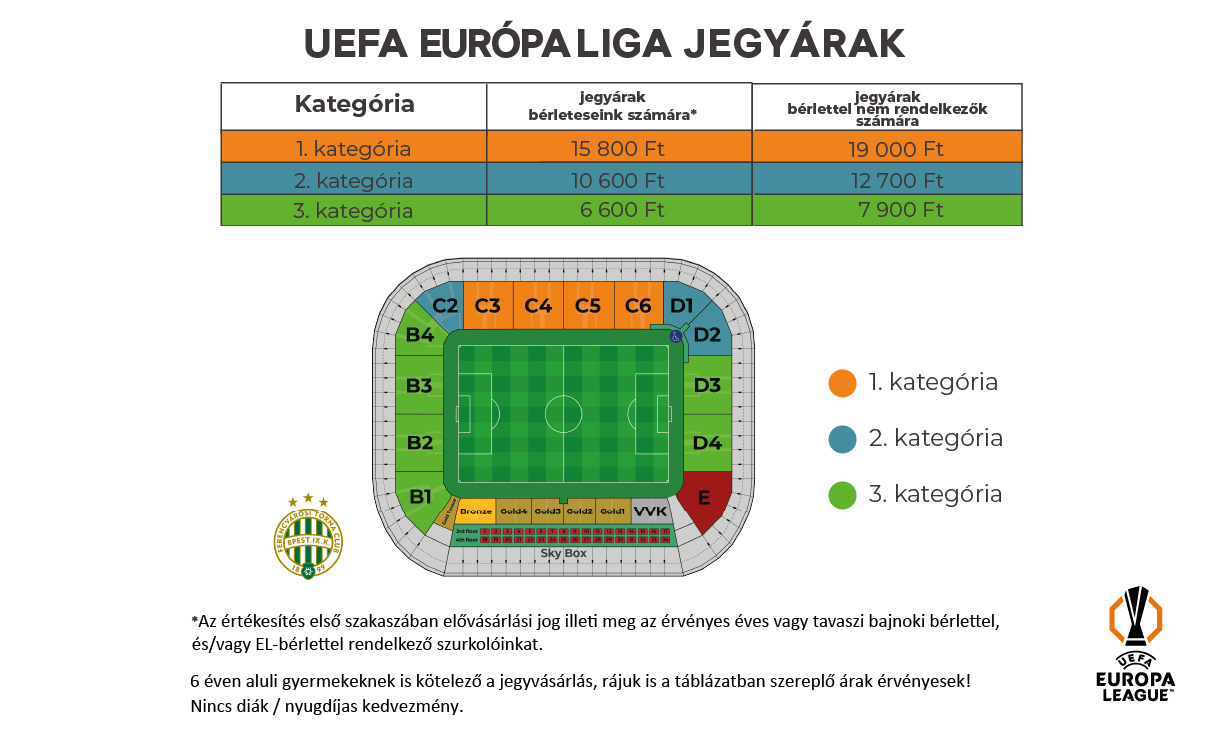Belépőt vásárolni online a meccsjegy.fradi.hu oldalon, illetve személyesen a Groupama Aréna Jegypénztárában tudnak nyitvatartási időben (K-P 10.00-18.00, Szo 9.00-13.00, V-H zárva. Meccsnapokon a mérkőzés időpontjához igazodva).