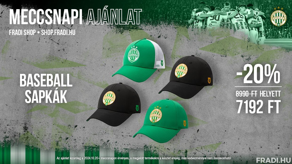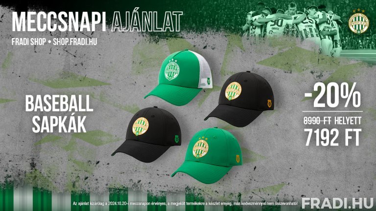 Ahogy szurkolóink már megszokhatták, a Groupama Arénában rendezendő bajnokira ezúttal is meccsnapi ajánlattal készültünk számukra. A Fehérvár ellen 20 százalékos kedvezménnyel, 7 192 Ft-ért vásárolhatják meg a Fradi-címerrel ellátott baseballsapkáinkat. Az EEE logóval, valamint a „Fradi” és „1899” feliratokkal díszített sapkákat zöld, fekete, fekete-zöld és zöld-fehér színben is beszerezhetik drukkereink.