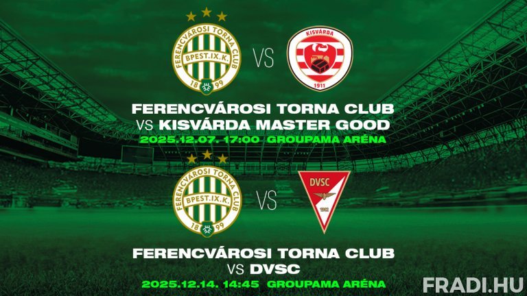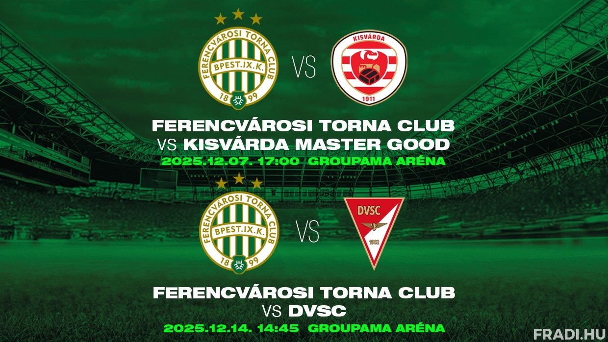 36-szoros magyar bajnok férfi labdarúgócsapatunk december 7-én, vasárnap, 17:00-kor a Kisvárdát, egy héttel később, december 14-én, vasárnap, 14:45-kor pedig a DVSC-t fogadja hazai pályán a Fizz Ligában.