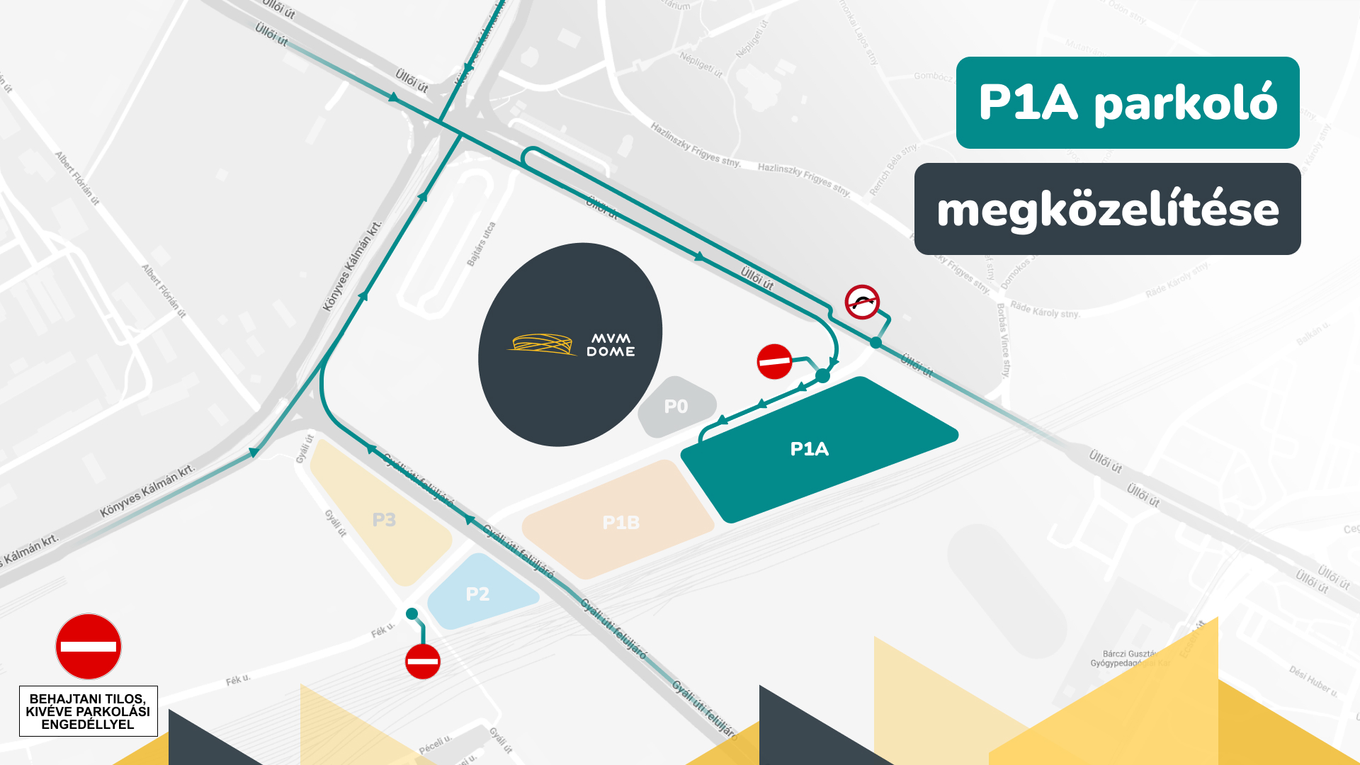 Szurkolóink a belvárosból érkezve, az Üllői úti felüljárón végig hajtva, a lámpánál jobbra kanyarodva, az út mellett találják meg a parkolót. Azon drukkereink, akik a Rákóczi híd felől jönnek, két módon is eljuthatnak ide: előbb a Wallis Motornál jobbra, majd az út végén balra kanyarodva érhetik el az MVM Dome murvás parkolóját. Egy másik lehetőség a Rákóczi híd felől érkezőknek, hogy végig haladnak a Könyves Kálmán körúton, majd az Üllői úthoz érve a felüljáró előtt jobbra kanyarodnak, a lámpánál pedig ismét egy jobb kanyart kell venniük, hogy eljussanak a parkolóig. A Népliget felőli megközelítés a Könyves Kálmán körútról úgy lehetséges, hogy az Üllői úti felüljáró alatt balra tartunk, majd az MVM Dome utáni lámpáknál jobbra kell kanyarodni. Végül mindazoknak, akik az Üllői úton a belváros felé tartanak, a felüljáró előtt a lámpáknál kell balra visszafordulniuk, és az MVM Dome előtt elhaladva a lámpánál jobbra bekanyarodva találják meg a parkolót.