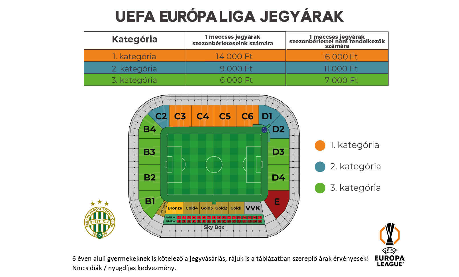 A 3 UEL főtáblás mérkőzésre érvényes bérletek továbbra is megvásárolhatóak, ezeknek az árairól ITT tájékozódhat.
