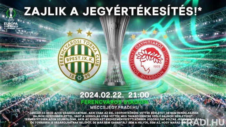 Természetesen azon drukkereink is megvásárolhatják most belépőjüket az Olympiakosz elleni visszavágóra, akik az első (azon drukkereink, akik bajnoki szezonbérletük mellett az EKL csoportkörére is megvették bérletüket) és a második kedvezményezetti körben (azon bajnoki szezonbérletes szurkolóink, akik nem rendelkeztek EKL csoportkörre érvényes bérlettel) jogosultak voltak jegyvásárlásra, de már nem garantált sem a helyük, sem az, hogy marad még jegy.