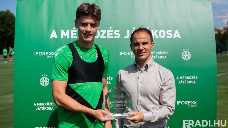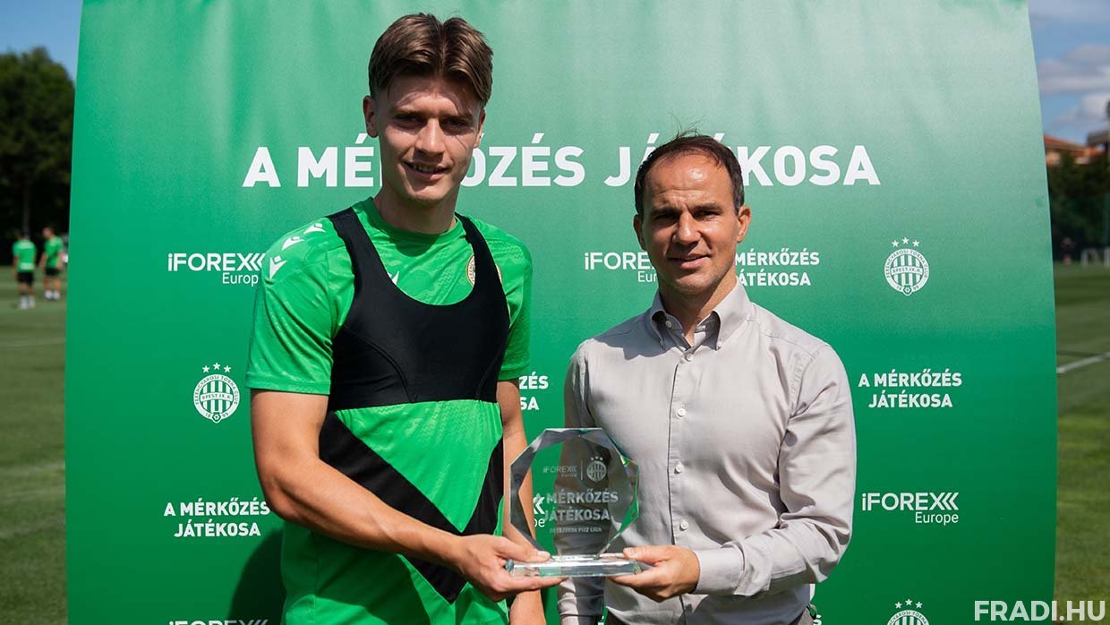 Teljesítményének köszönhetően drukkereink őt választották meg a Kazincbarcika elleni mérkőzés legjobb játékosának, így az augusztus 4-i, hétfői edzés előtt az FTC sportigazgatója, Hajnal Tamás adta át neki a Meccs embere by iFOREX Europe elismerést.