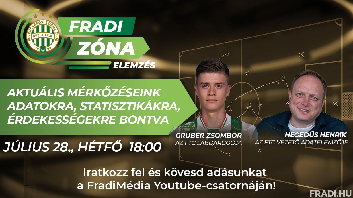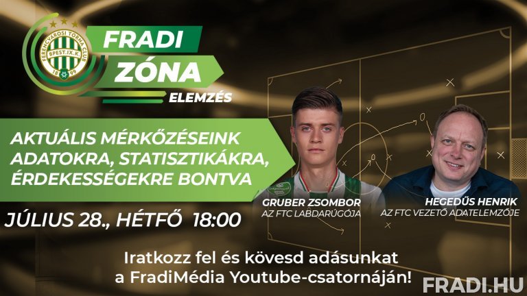 A nagysikerű meccsnapi értékelő műsor után április 7-én vadonatúj, exkluzív műsorral bővült vodcastunk: a Fradi Zóna Elemzésben az aktuális mérkőzésünket követő hétfőn Jáky Gergely műsorvezető az FTC vezető adatelemzőjével, Hegedűs Henrikkel beszélgetett, aki a legutóbbi találkozóból készített friss statisztikákkal, kimutatásokkal, érdekességekkel készült.
