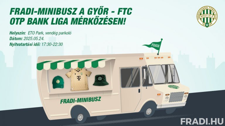 35-szörös magyar bajnok férfi labdarúgócsapatunk május 24-én, szombaton 20.00-kor az ETO FC Győr vendégeként lép pályára az OTP Bank Ligában. A bajnoki címről döntő találkozó napján, 17.30 és 22.30 között az ETO Park vendégparkolójában ott lesz a Fradi-minibusz is.