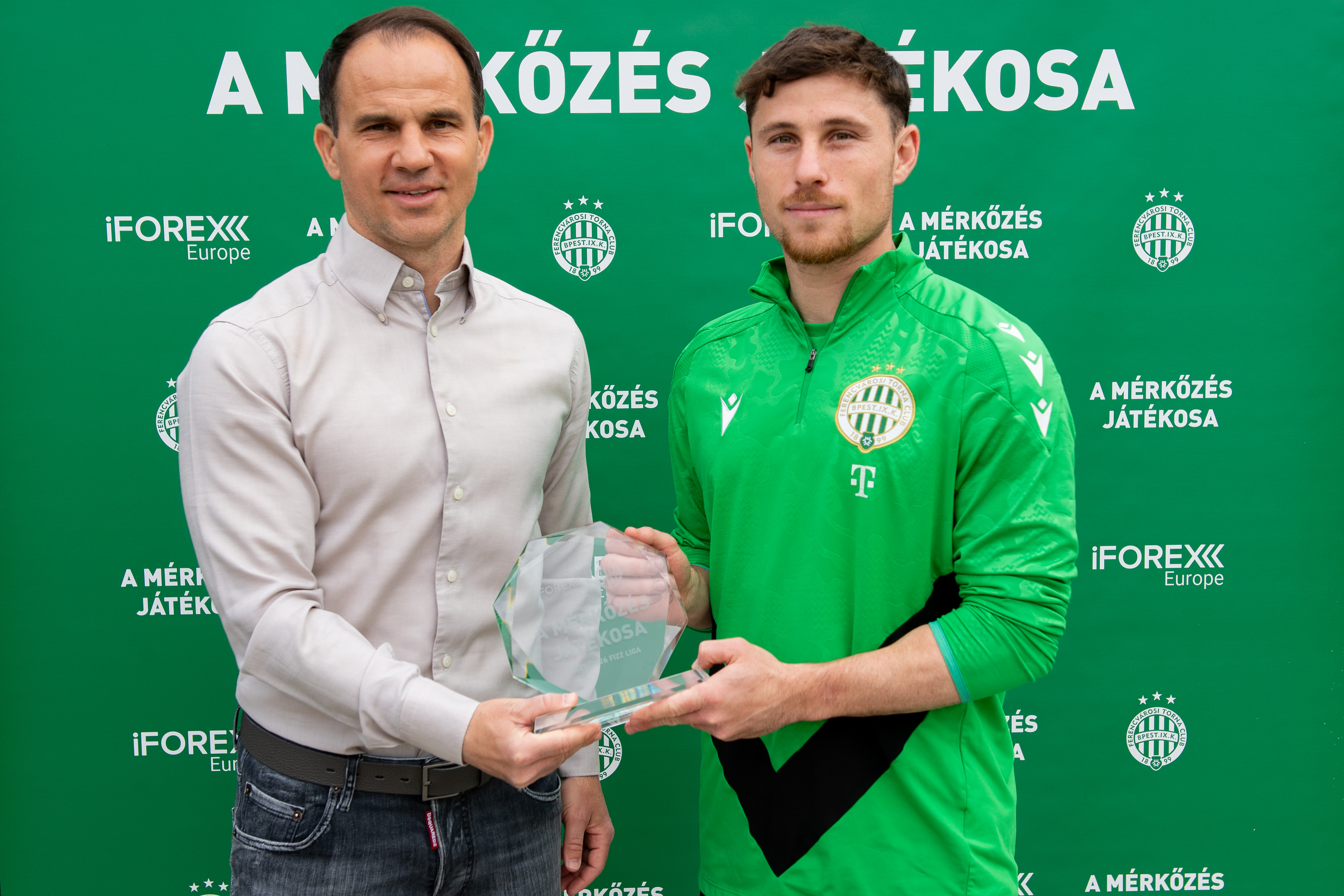 Bajnoki címvédő férfi labdarúgócsapatunk kedd este 2-1-es győzelmet aratott a Puskás Akadémia ellen a Groupama Arénában. A Fizz Liga 26. fordulójából elhalasztott mérkőzés komoly jelentőséggel bírt, pótlása után ugyanis pontegyenlőséggel, de több győzelmének köszönhetően újra az élre állt a Ferencváros, amelynek góljait Lenny Joseph és Gavriel Kanikovszki szerezte. A szurkolók szavazatai alapján izraeli középpályásunk, Kanikovszki kapta meg a Meccs legjobbja by iFOREX Europe-díjat, melyet a szerdai edzés előtt Hajnal Tamás sportigazgatótól vehetett át.