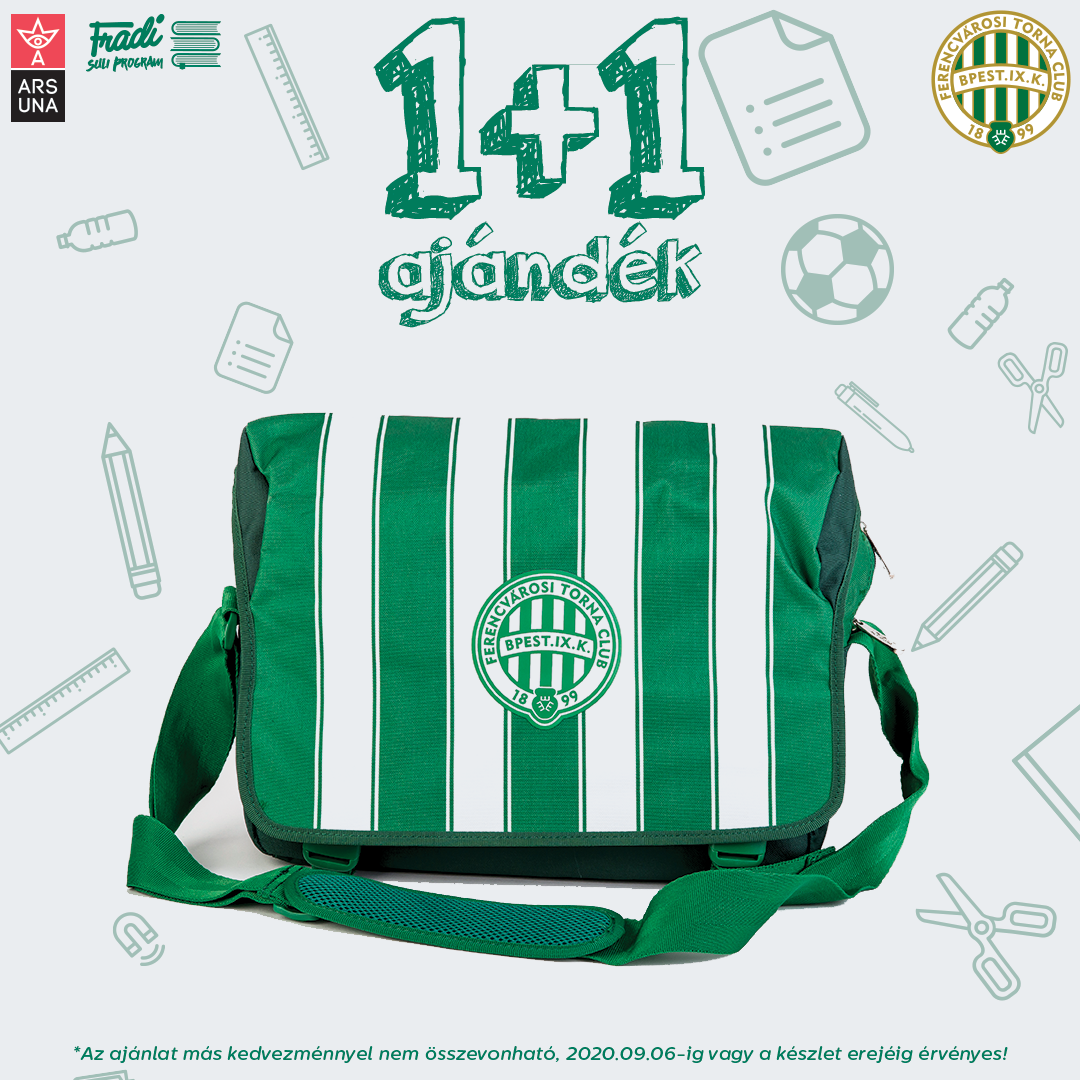Emellett további akciók is várnak rád. Ha a Ferencváros 1899 vagy a zöld-fehér FTC címeres oldaltáskát választod, akkor egy áráért kettőt vihetsz haza. Egyéb kedvezmények ITT elérhetőek!