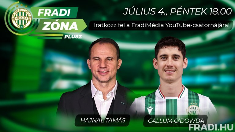 A Fradi Zóna Plusz legújabb adását július 4-én, péntek 18.00-tól követhetik a FradiMédia hivatalos YouTube-csatornáján. Ezúttal nemrég bejelentett új igazolásunkkal, a Cardiff City együttesétől érkezett ír Callum O’Dowdával, valamint az Ferencvárosi Torna Club sportigazgatójával, Hajnal Tamással beszélgetünk.