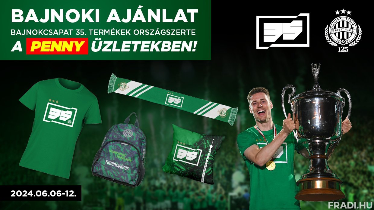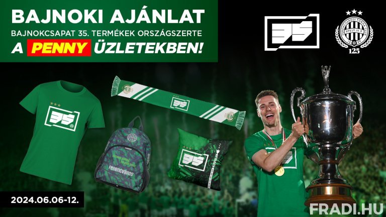 Június 6. és június 12. között ismét várják szurkolóinkat a Fradi-termékek a Penny 230 magyarországi üzletében.