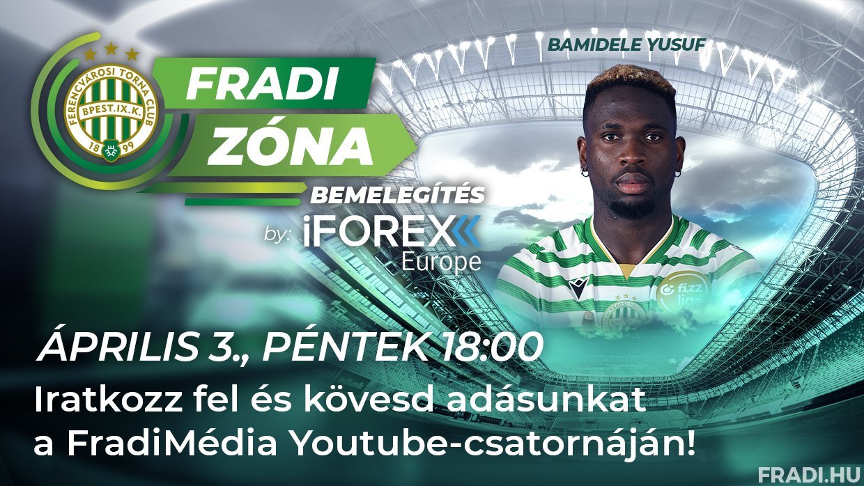 Mérkőzés előtti felvezető adásunkat, a Fradi Zóna Bemelegítést, a Fradi Zóna Értékelés Live-hoz, a Fradi Zóna Elemzéshez és a Fradi Zóna Pluszhoz hasonlóan az iFOREX Europe támogatja, műsorainkat az FTC YouTube-csatornáján lehet megtekinteni.