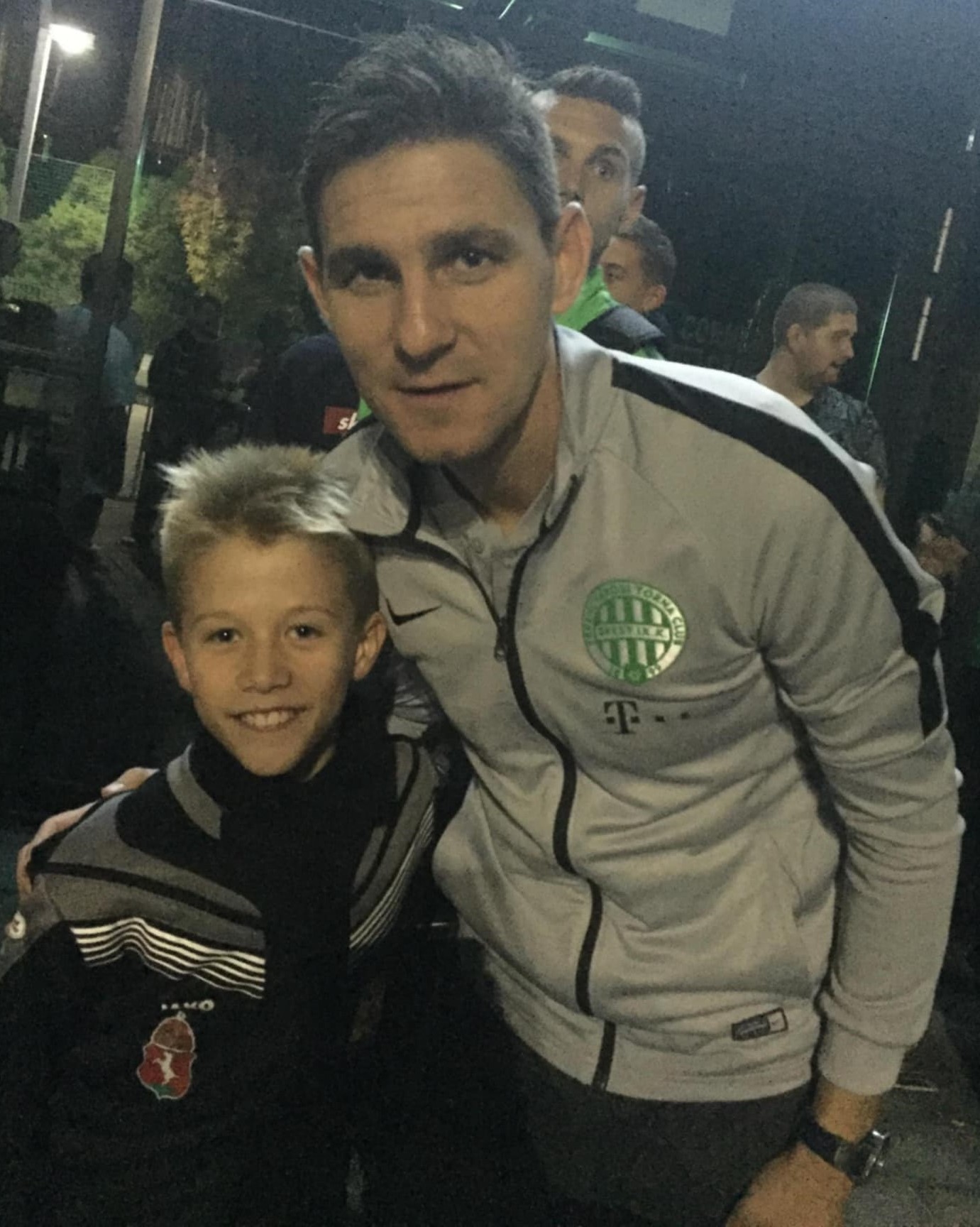 – A teljes képhez az is hozzátartozik, hogy én már 13 évesen is Serli Sanyi bácsival meg a Dukon Béláékkal együtt voltam edzőtáborban a Ferencvárossal, nekem már onnan elindult a fradizmus, sőt: mindannyian Ferencváros-szurkolók voltunk a családban. Az, hogy másképp alakult a pályafutásom, tehát hogy előbb szerepeltem Kecskeméten, Pécsett, a Videotonban, majd úgy kerültem a Fradiba, onnan pedig külföldre, az már egy teljesen más dolog. Barni Kecskemét- és Ferencváros-szurkoló, a példaképe Gera Zoltán (képünkön vele látható Czéh Barnabás).