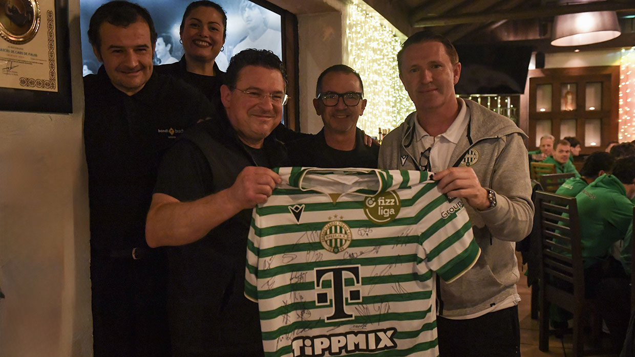 Csapatunk a mérkőzés utáni vacsorát ezúttal nem a szállásunkként szolgáló hotelben, hanem a monotonitást megtörve, La Mangára beutazva, az El Rancho de Cabo de Palosban töltötte el. A kellemes hangulatú este után a vendéglátók emlékbe egy aláírt Ferencváros-mezt kaptak ajándékba, amelynek komoly riválisai lesznek a falon, ahol Lionel Messi dedikált Barcelona-felsője is feszül, közvetlenül a ’78-as világbajnok argentin válogatott óriástapátéja mellett.
